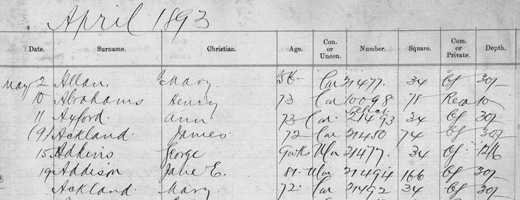 Burial Record James Ackland (1818-1893) 9 May 1893 Nunhead Cemetery London Borough of Southwark Ref: 74/21450 |